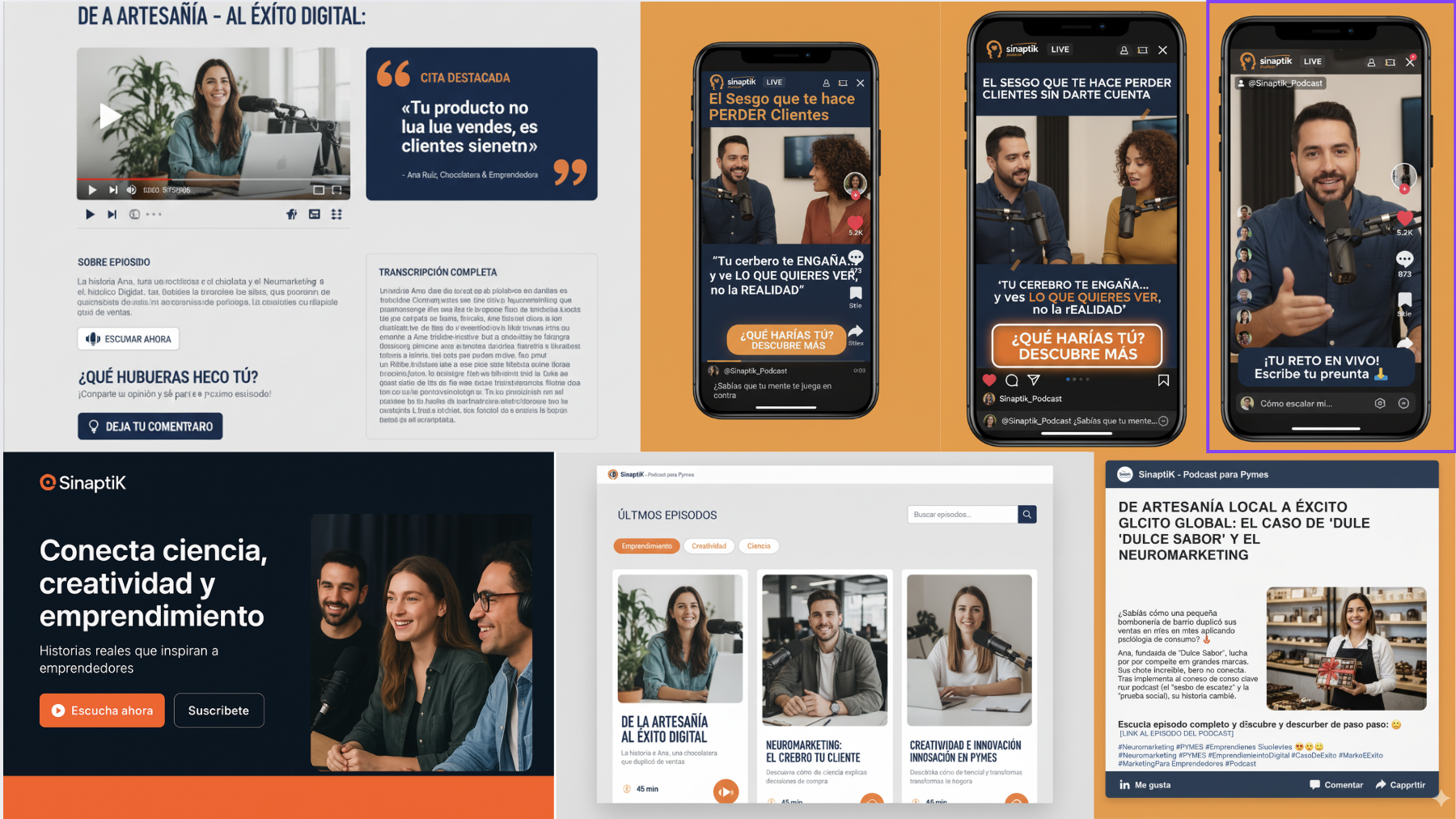 Durante mis prácticas en Science & Marketing, dentro del proyecto SinaptiK, realicé investigaciones en neuromarketing aplicadas al análisis del consumidor y al diseño de contenidos digitales, elaborando perfiles psicológicos, buyer personas y propuestas estratégicas para redes sociales y videopodcast. Desarrollé guiones y enfoques emocionales para entrevistas, analicé el comportamiento de la audiencia y generé informes que integraban principios de psicología, atención, memoria y persuasión. Este periodo me permitió fortalecer habilidades en pensamiento crítico, comunicación estratégica, análisis de datos cualitativos y creación de contenidos orientados a mejorar el impacto del proyecto.